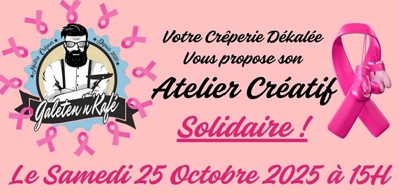 La crêperie décalée Galeten’n’Kafé vous propose un atelier créatif solidaire pour soutenir les malades, leurs proches et les associations dans la lutte contre le cancer du sein. Vous pourrez ainsi profiter d’un moment pour vous tout en faisant une belle action.