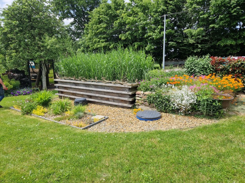 de jardins d’assainissement et de jardins de pluie. La visite d’une heure environ comprend l’observation d’un jardin d’assainissement en fonctionnement, permettant de voir le traitement écologique par filtration végétale.