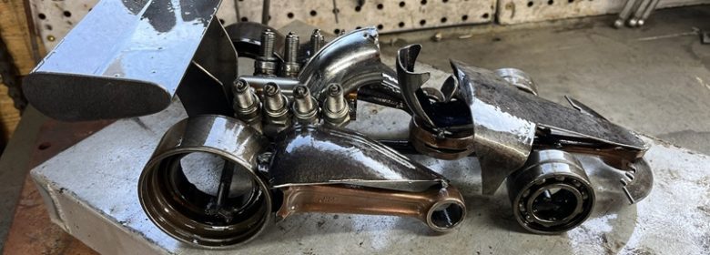 Après 20 ans dans la mécanique et passionné de motos, Sylvain crée aujourd’hui des objets décoratifs et/ou utiles au quotidien, comme des luminaires, des dessous de plats, des sculptures sur la base de pièces de motos, auto, machines et divers objets métalliques en y associant souvent un peu de bois, le tout dans une éthique upcycling. Chacune de ses réalisations est unique et a son propre caractère. Chaque projet personnel est également étudié.