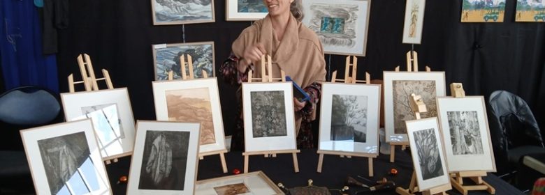 Après avoir éduqué mes enfants, j’ai repris à plein temps la gravure sur cuivre. C’est une technique de taille douce en creux sur le métal, soit avec des outils, comme burin, pointes sèches. Je grave directement sur le métal ou par des techniques chimiques par trempage de la plaque dans des acides, entre autre du perchlorure de fer. Puis je fais un tirage de la plaque sur du papier, vélin d’Arches à l’aide d’une presse, après avoir encré la plaque.