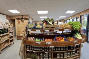 Retrouvez sur place un magasin de produits fermiers (25 fermes et artisans locaux) regroupant plus d’une cinquantaine de produits frais : légumes, fruits et petits fruits de la ferme (quinzaine de variété chaque jour) mais aussi charcuteries, produits cidricoles, bières, produits laitiers (vache, chèvre, brebis), savon, huile, moutardes, infusion et café ainsi qu’une conserverie diversifiée.