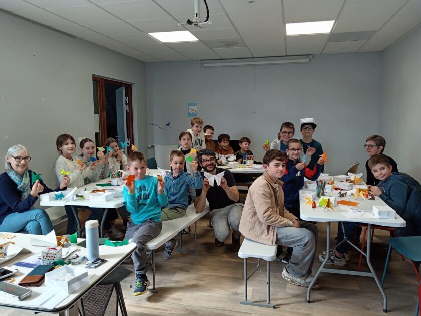 Samedi 21 février dernier, Gwenaël Prost, artiste-plieur qui réalisera l’œuvre sur Maen Roch, a proposé à une vingtaine d’artistes en herbe, dont certains sont dans le conseil municipal des jeunes, de réaliser des origamis.