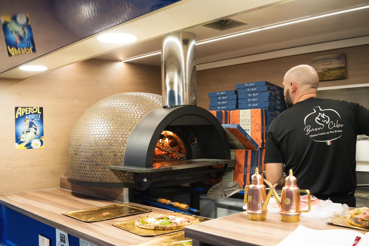 Vente de pizzas cuites au feu de bois. ■ Informations pratiques : Présent le jeudi à partir de 18h sur la place de la mairie de Saint-Brice-en-Coglès Commandes possibles par SMS. Tél : 06 23 47 47 54 Page Facebook : Buon Cibo Pizza |