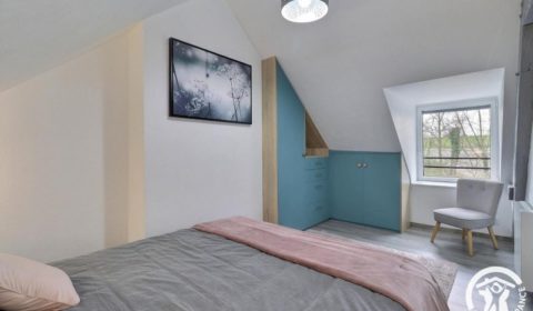 – une chambre avec un lit de 160X200 modulable en deux lits de 80×200
