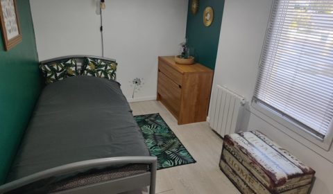 • La chambre « Nature »: dans ses 9 m², la chambre offre un lit confortable une place, un espace bureau ainsi qu’une atmosphère bien à elle.