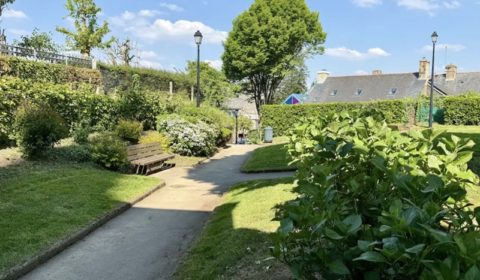 Le gîte donne sur le jardin de La Motte et ses équipements extérieurs massifs.