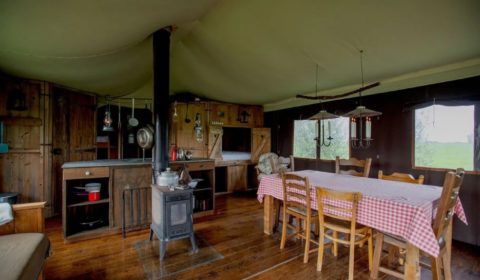 La pièce centrale du lodge est idéale pour se retrouver en famille ou entre amis pour profiter le temps d’un séjour à la campagne.