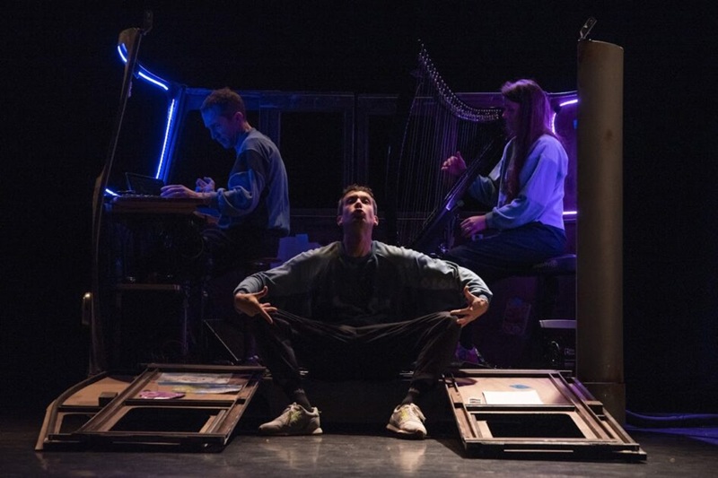 Tel un détective de l’imaginaire, le conteur embarque le public dans une enquête fantastique sur les traces de l’Atlantide bretonne et de son personnage féminin iconique. Le rythme est haletant, la parole ciselée de Lukaz Nedeleg, la harpe d’Alice Soria-Cadoret et les machines de Nikolaz Cadoret portent un univers sonore hypnotique.